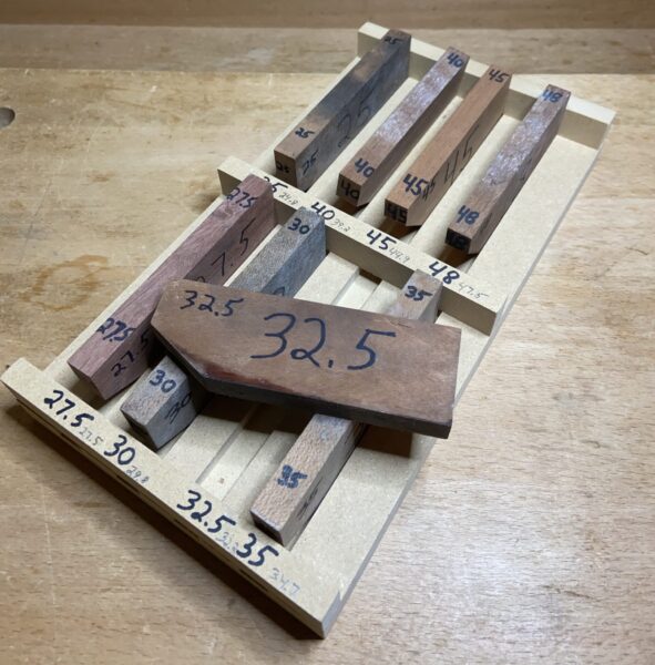 This adds a comfortably controllable ability for angling the plane edge on the flat stone. This is far better than trying to alternately angle onto just the outside corners of a regular flat wheel guide.
